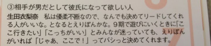 まるわかりブックで「彼氏にするならえりぽん」な鞘師